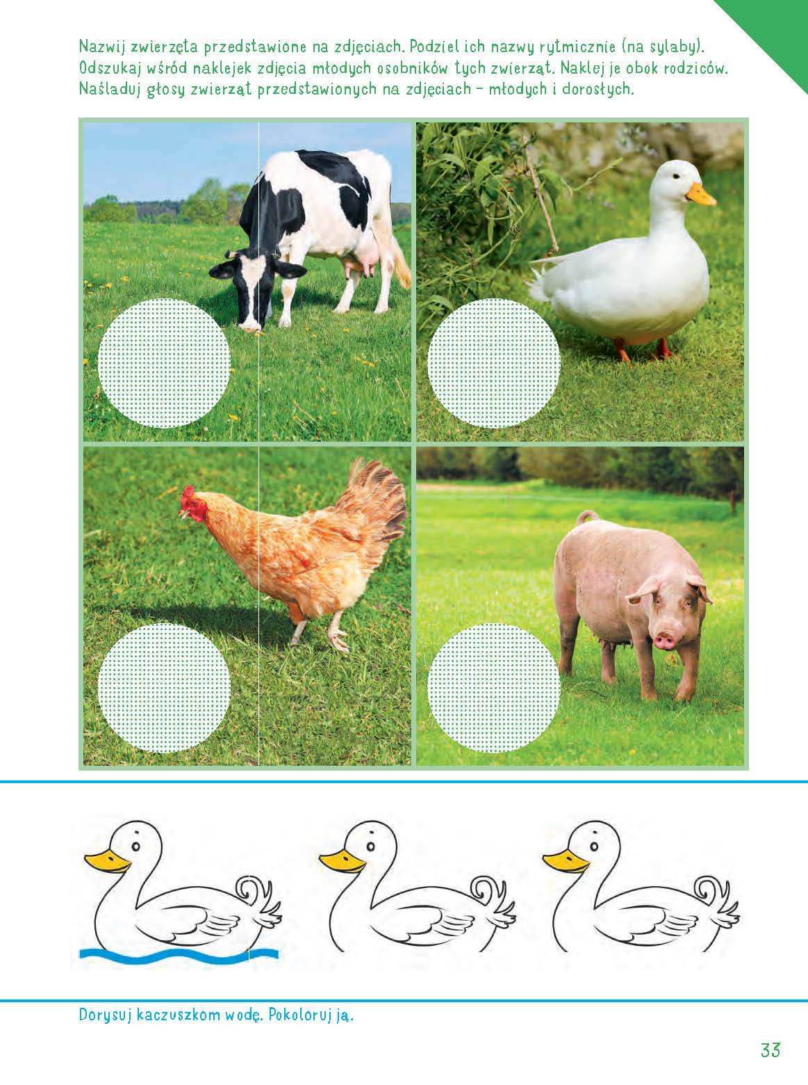 − odszukują wśród naklejek zdjęcia młodych zwierząt i naklejają je w odpowiednich miejscach,