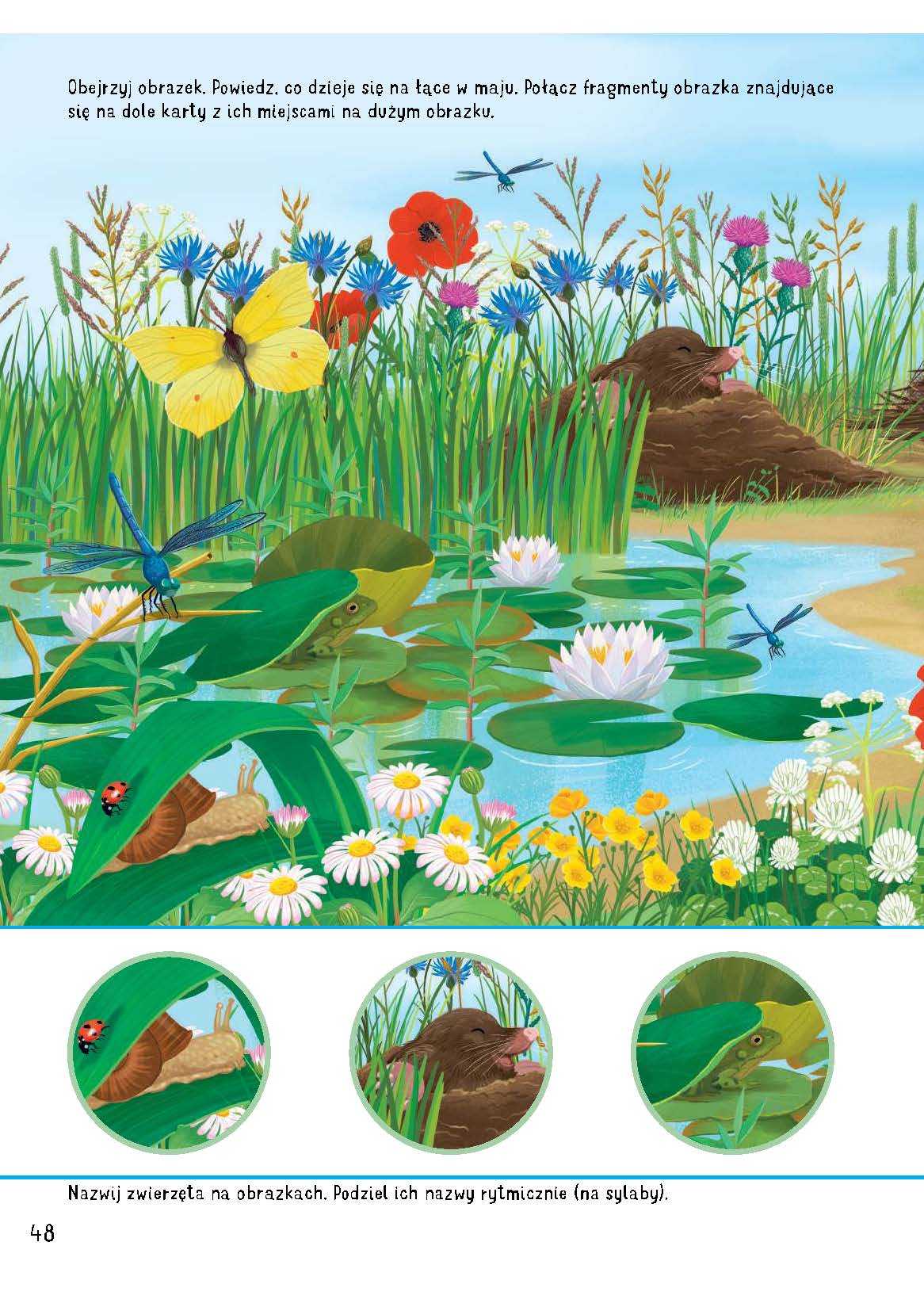 Rodzic pokazuje dzieciom obrazek biedronki z 2 oraz z 7 kropkami. Informuje dzieci, że w naszym kraju występują biedronki z 2 i 7 kropkami. Następnie pyta: Jaka jest biedronka?, Jak wygląda? Dziecko opisują jej wygląd, swoje skojarzenia itp. Następnie Rodzic pokazuje rysunek i pyta, czego brakuje biedronce. Po przyklejeniu wszystkich kropek dzieci wspólnie z Rodzicem liczą kropki na biedronce.