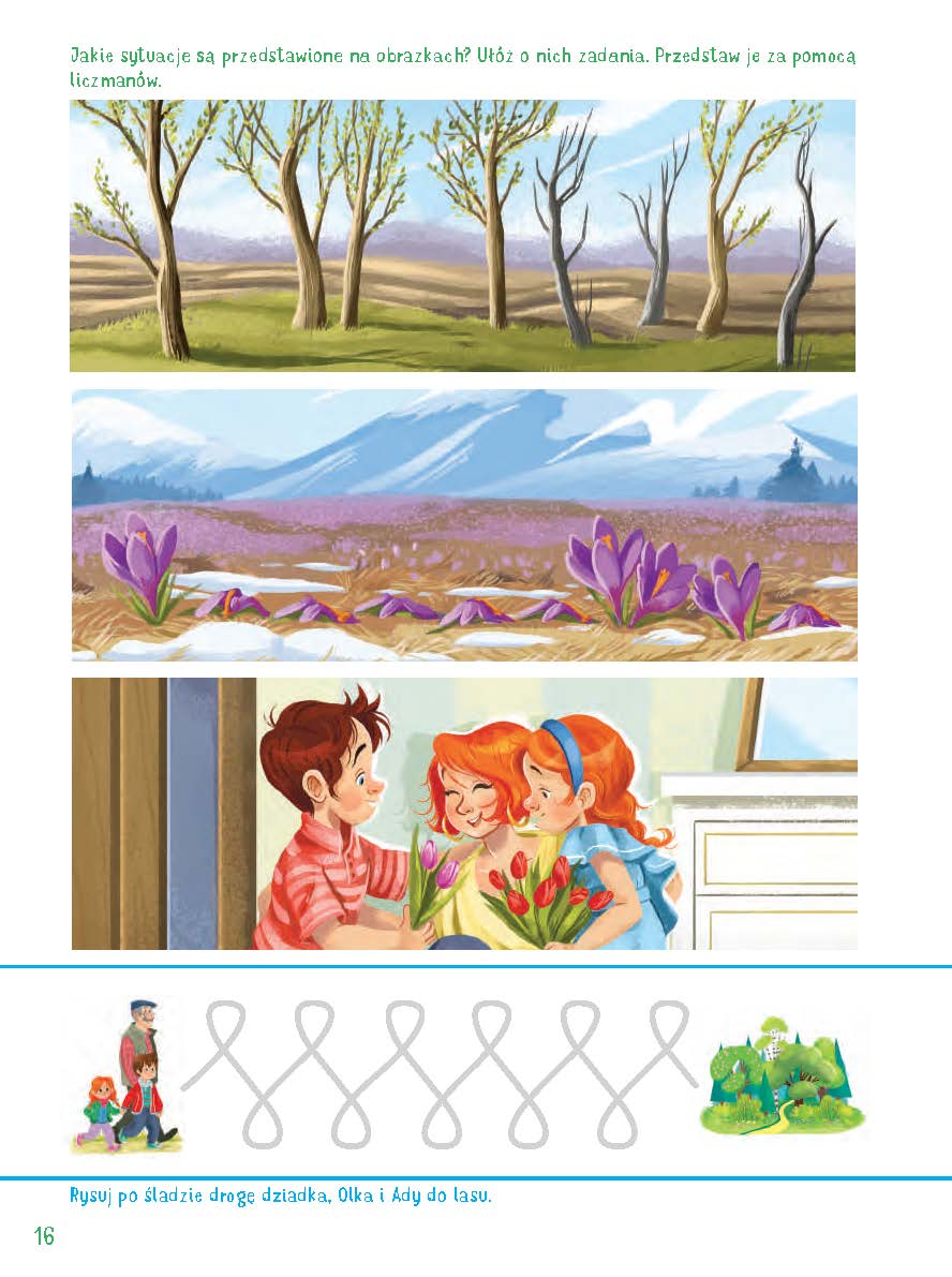 3. Oglądanie sytuacji przedstawionych na obrazkach. Układanie o nich zadań.